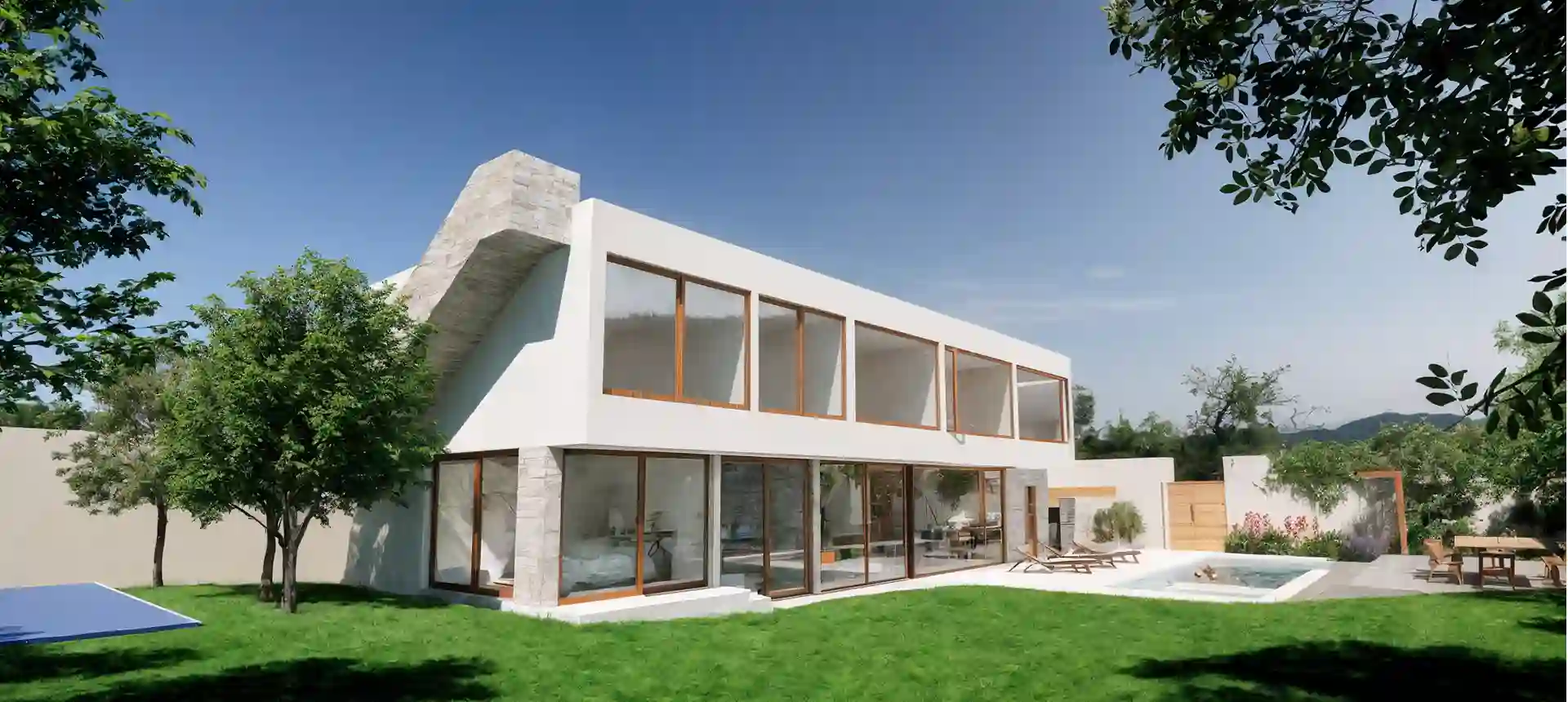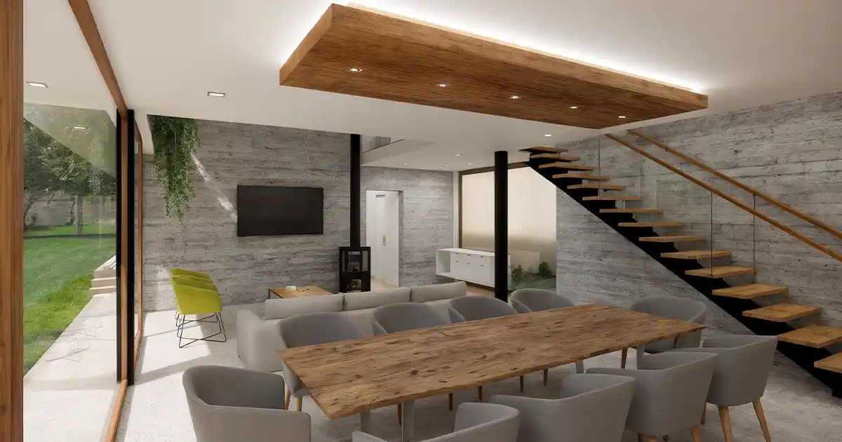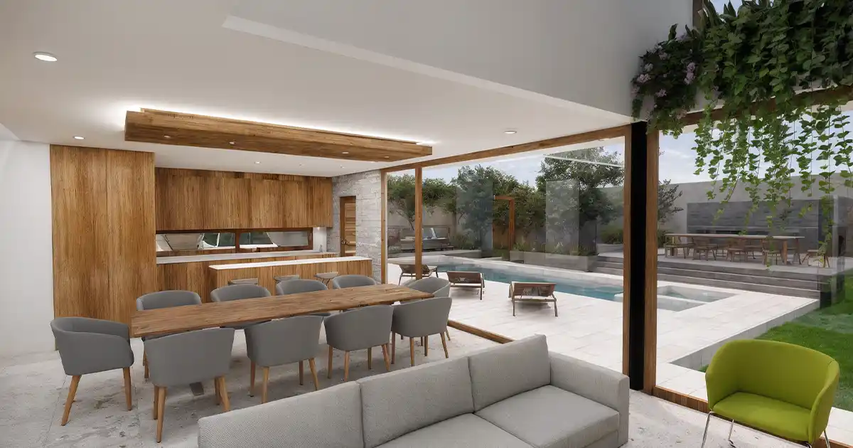 La sala como el corazón de la casa, se orienta hacia la piscina, terraza y zona de parrilla, creando un entorno ideal para compartir en familia y con amigos. Los jardines y la mini cancha para deportes como básquet y vóley, suman diversión a las actividades libres que se dan en la casa y su propio entorno natural. Un diseño que combina confort, interacción social y contacto permanente con la naturaleza, transformando cada día en una experiencia única de descanso y encuentro.