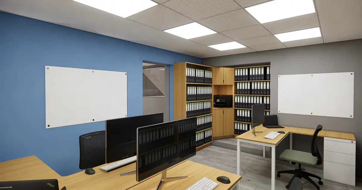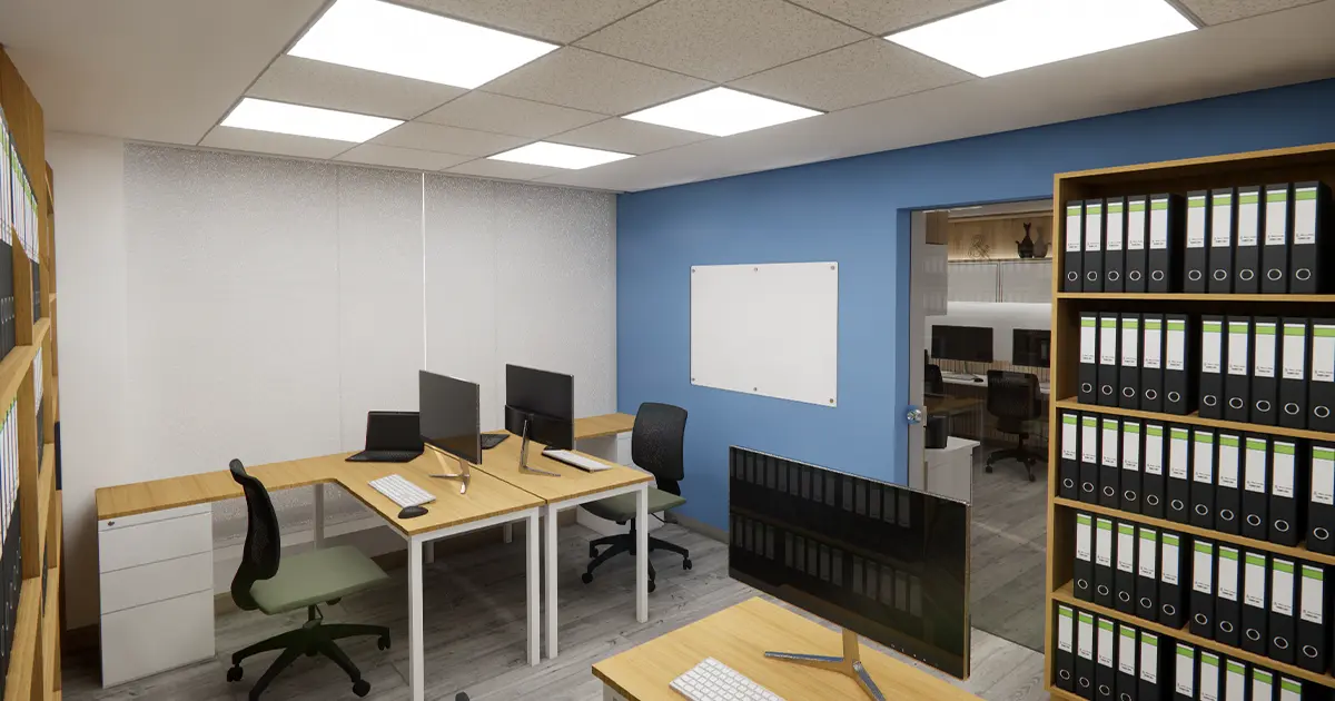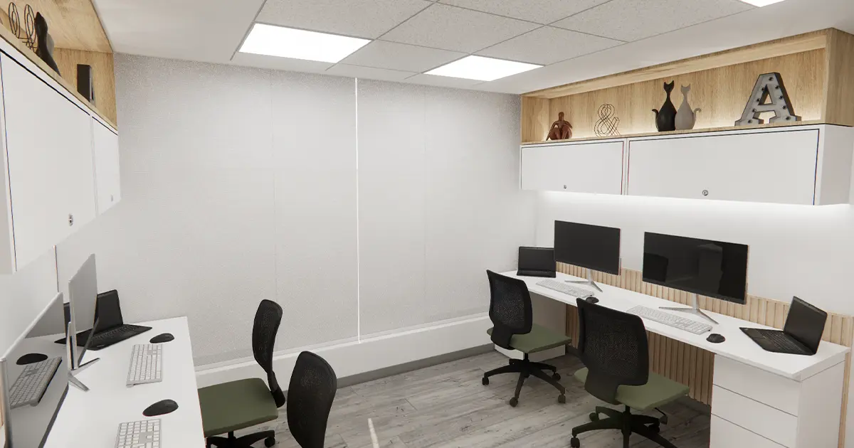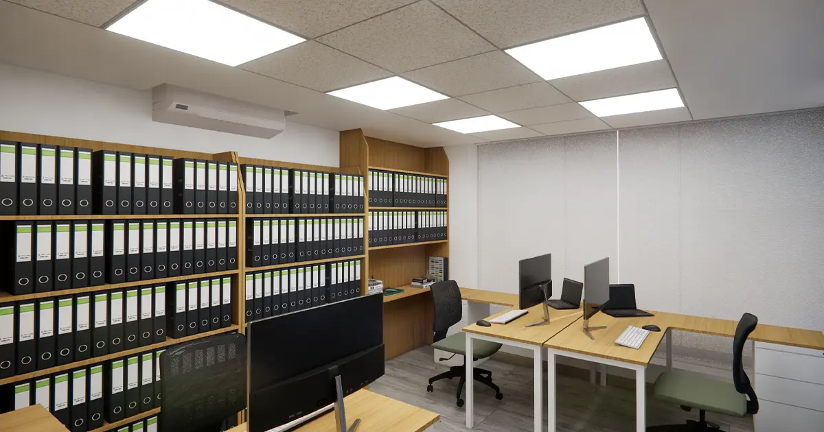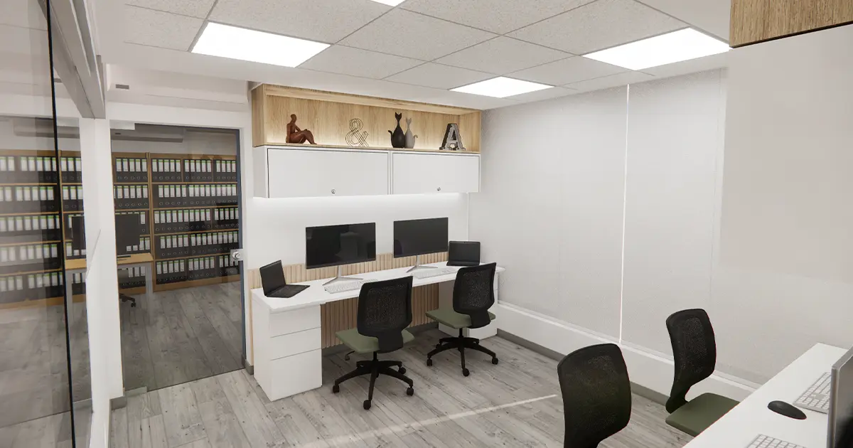 En las áreas de ventas y contabilidad se realizaron intervenciones puntuales pero estratégicas: nuevo mobiliario moderno y funcional para el área comercial, y soluciones de almacenamiento optimizadas en contabilidad, que mejoran la organización sin modificar la estructura original.