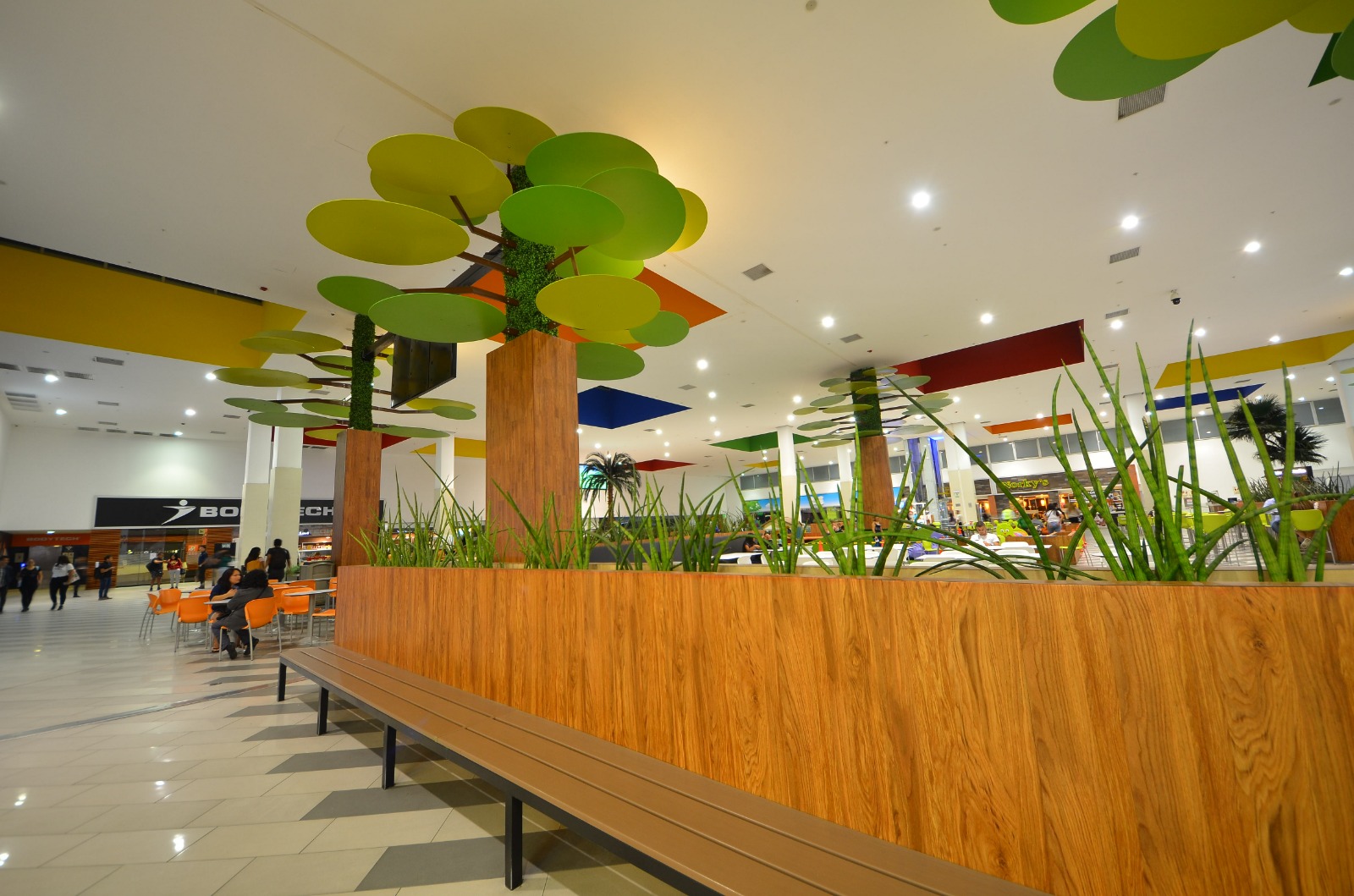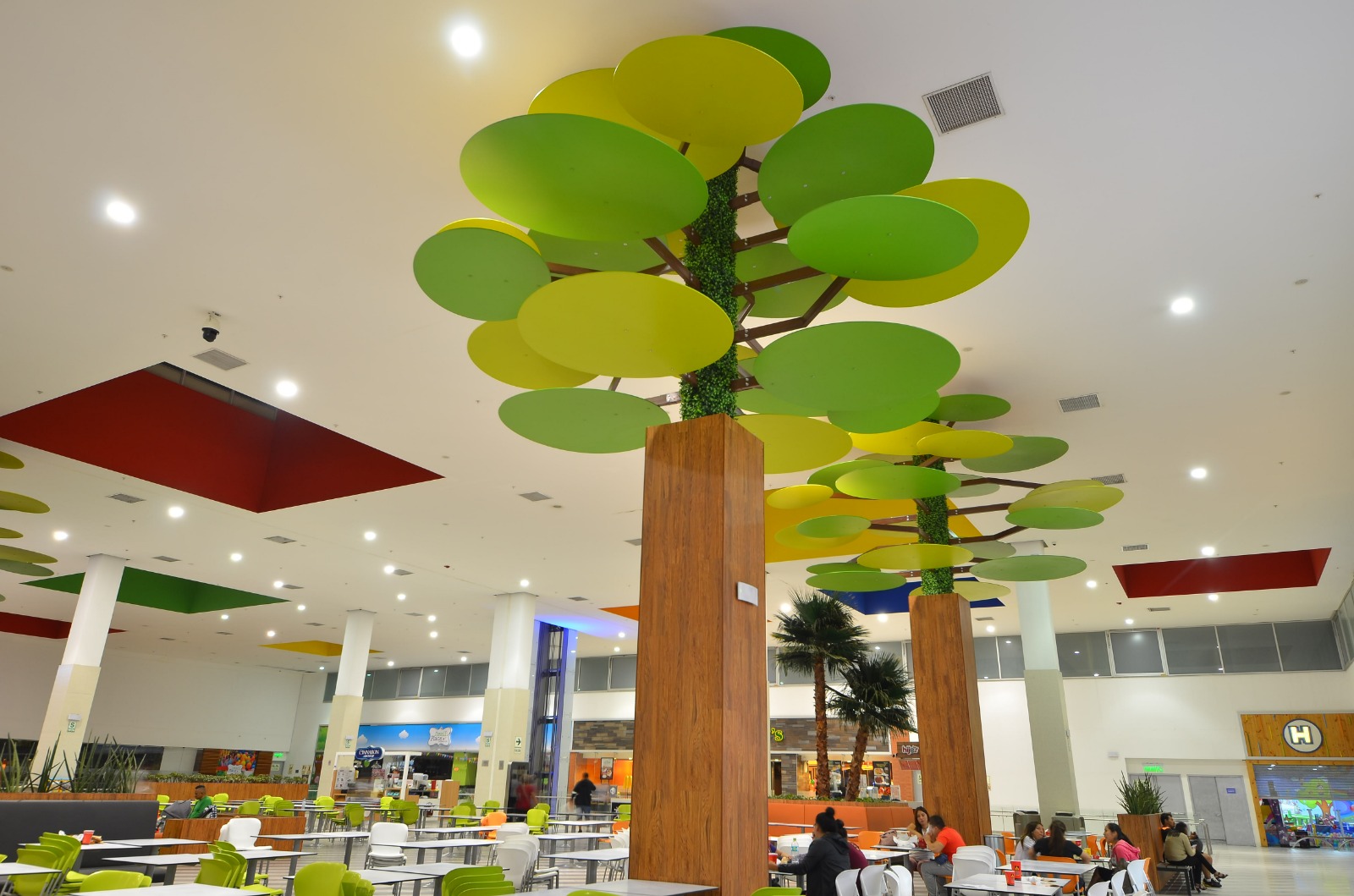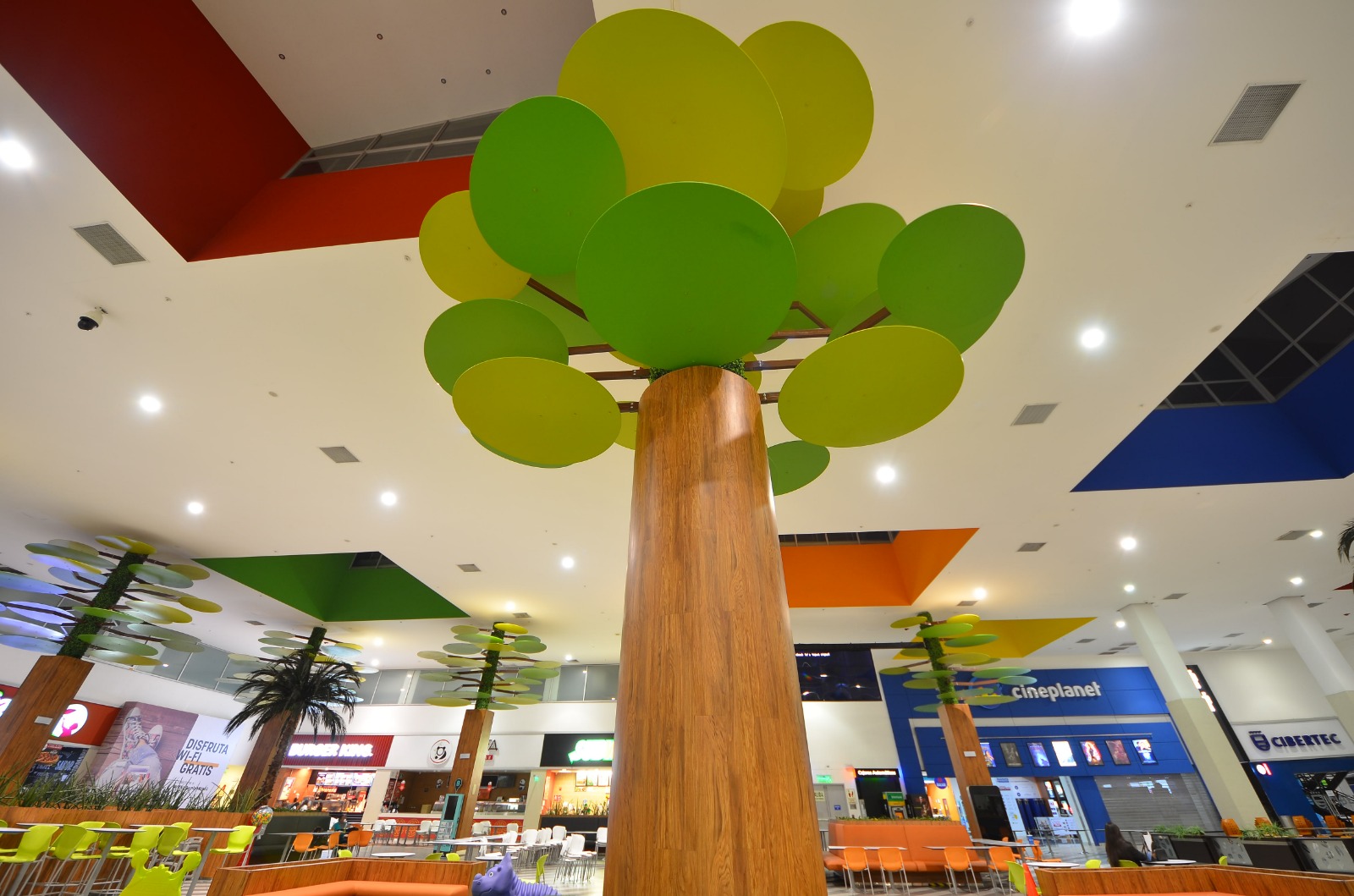 La renovación del patio de comidas convirtió este espacio en un lugar cálido y vibrante, donde la arquitectura se inspira en la naturaleza para transformar la experiencia de los visitantes. Las columnas se reinventaron como árboles estilizados, cuyas “copas” evocan la frescura de los parques de Breña y generan un juego de escalas con la altura total del gran espacio destinado a esta actividad, logrando un ambiente más acogedor y cercano.