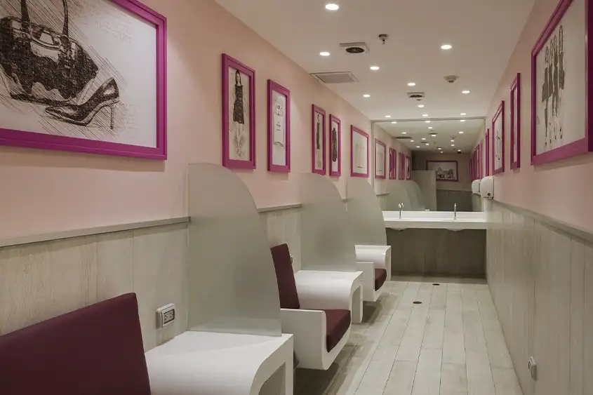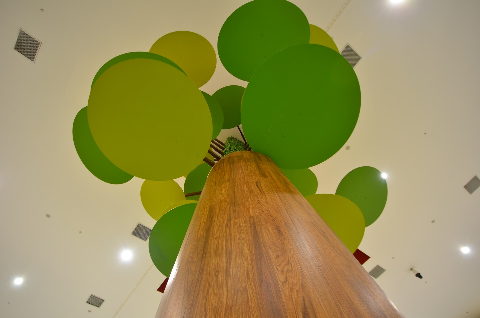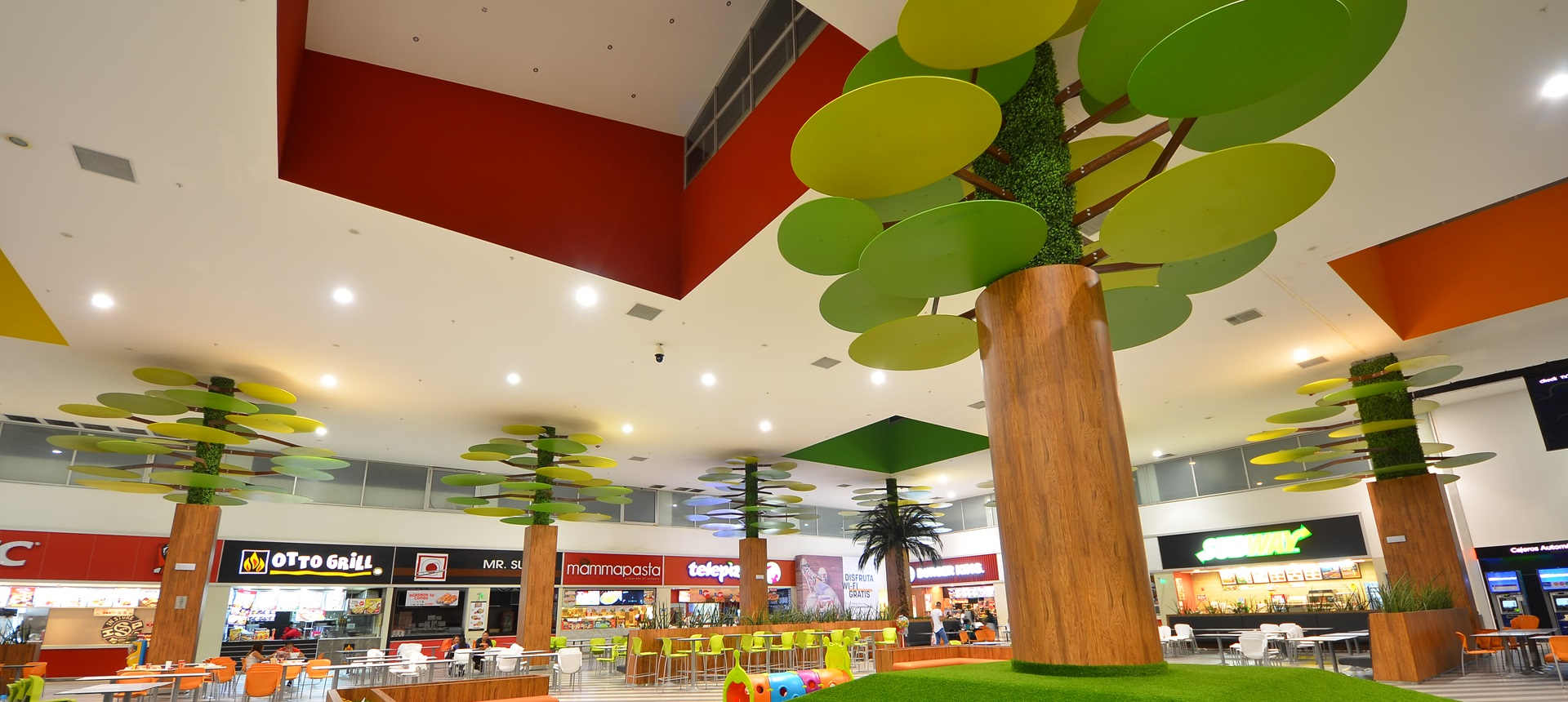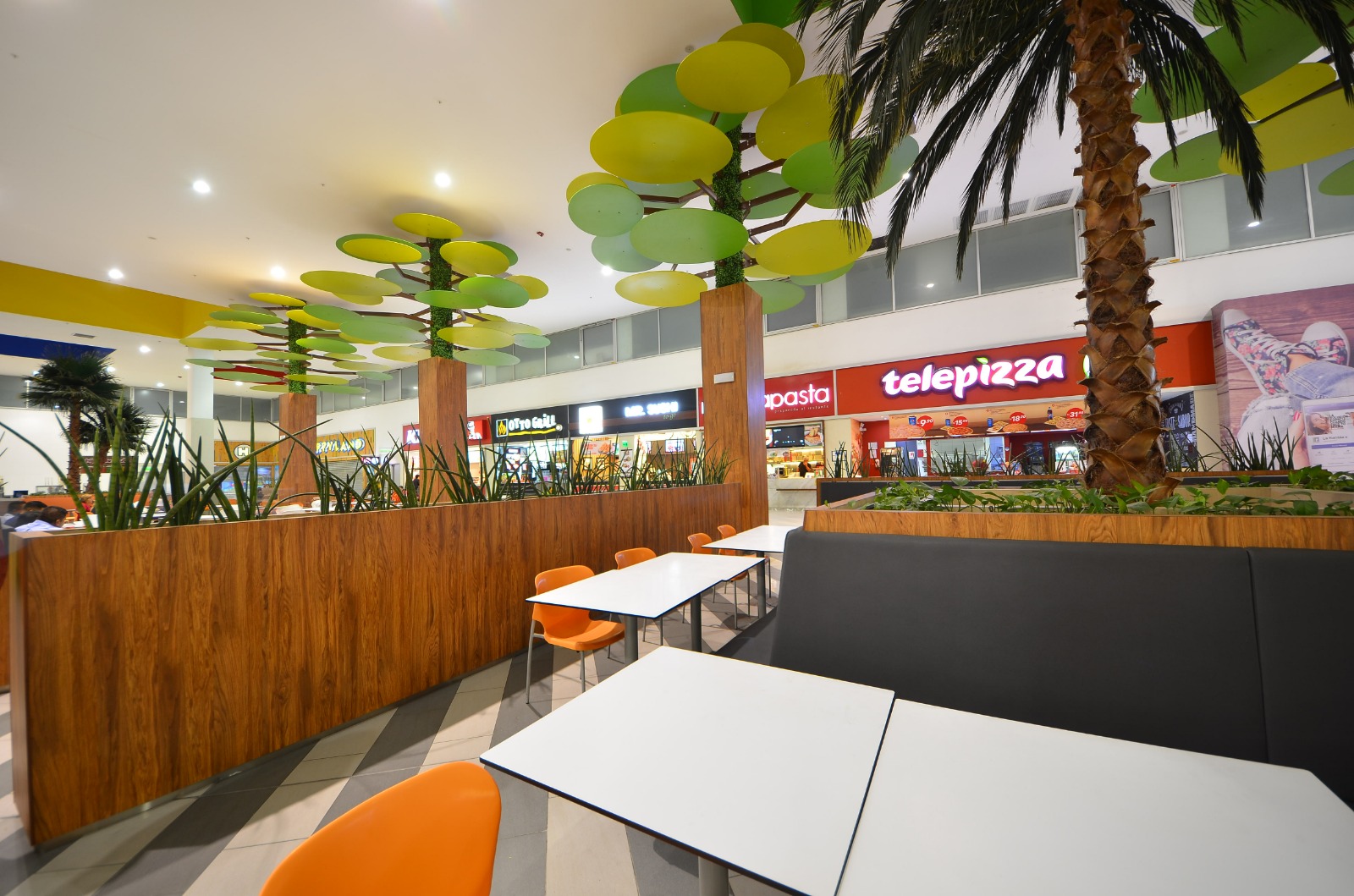 La renovación del patio de comidas convirtió este espacio en un lugar cálido y vibrante, donde la arquitectura se inspira en la naturaleza para transformar la experiencia de los visitantes. Las columnas se reinventaron como árboles estilizados, cuyas “copas” evocan la frescura de los parques de Breña y generan un juego de escalas con la altura total del gran espacio destinado a esta actividad, logrando un ambiente más acogedor y cercano.